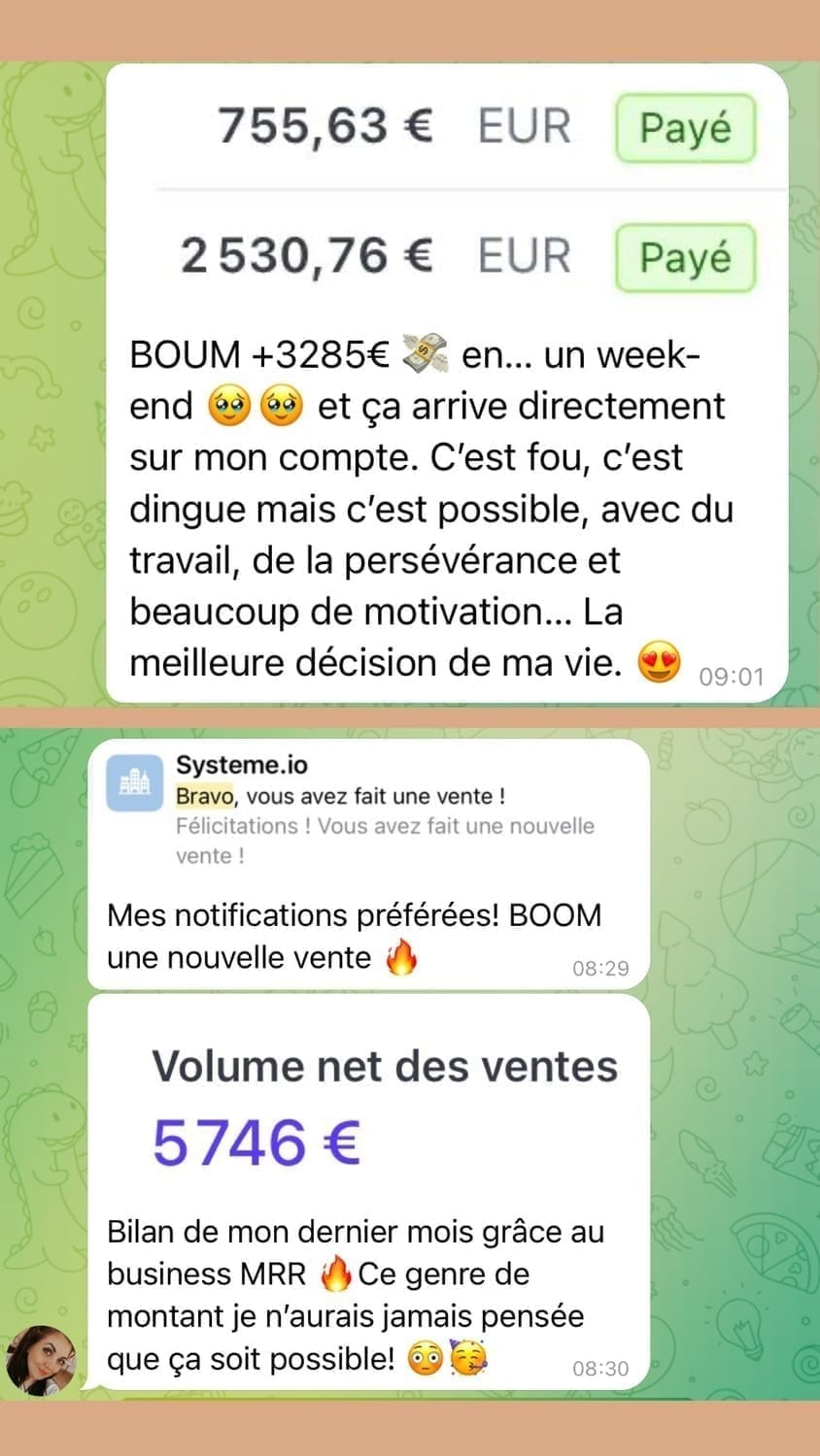- Premières ventes réalisées - Audience engagée construite - Automatisations qui tournent